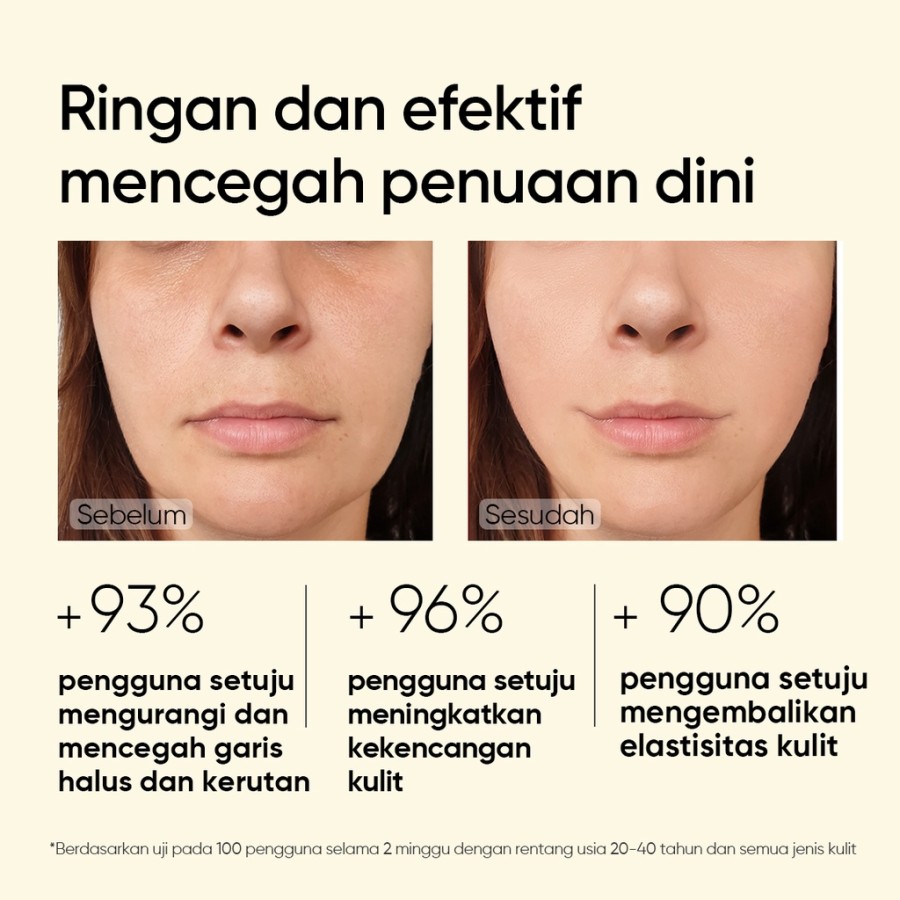 Retinol moisturizer dengan encapsulated retinol yang gentle dan aman untuk pemula. Menggunakan Time-released Technology yang bekerja dengan cepat dan efektif tanpa menimbulkan iritasi pada kulit wajah. Kandungan 3 tipe encapsulated retinol menjaga elastisitas kulit dan mencegah munculnya tanda penuaan seperti kerutan dan garis halus. Dilengkapi dengan Ceramide dan Collagen yang mengunci kelembaban kulit, menjadikannya kenyal dan halus. Retinol moisturizer dengan tekstur gel yang dibuat khusus dengan formulasi ringan, aman untuk pemula.